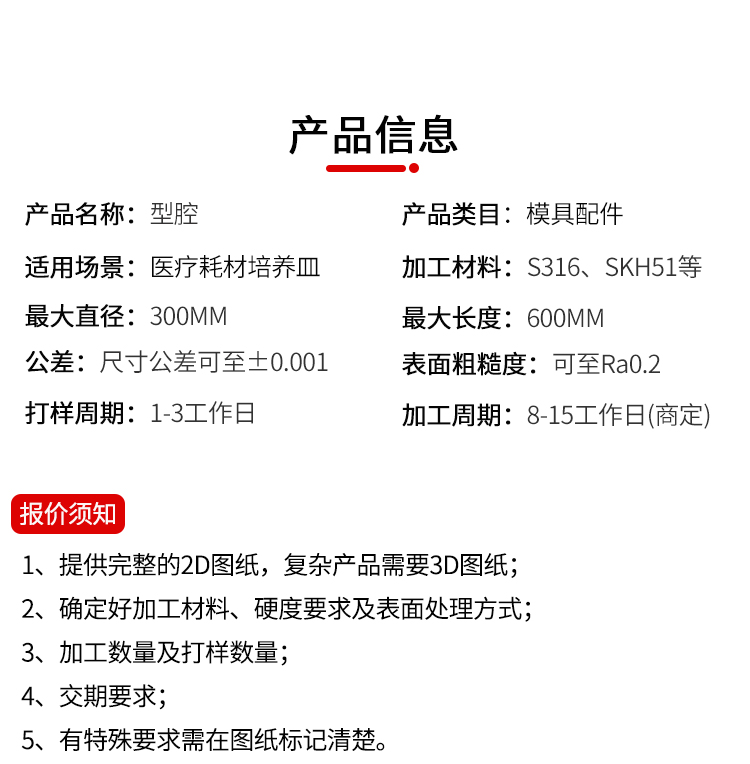 Processing materials: SKH51, S316, etc.